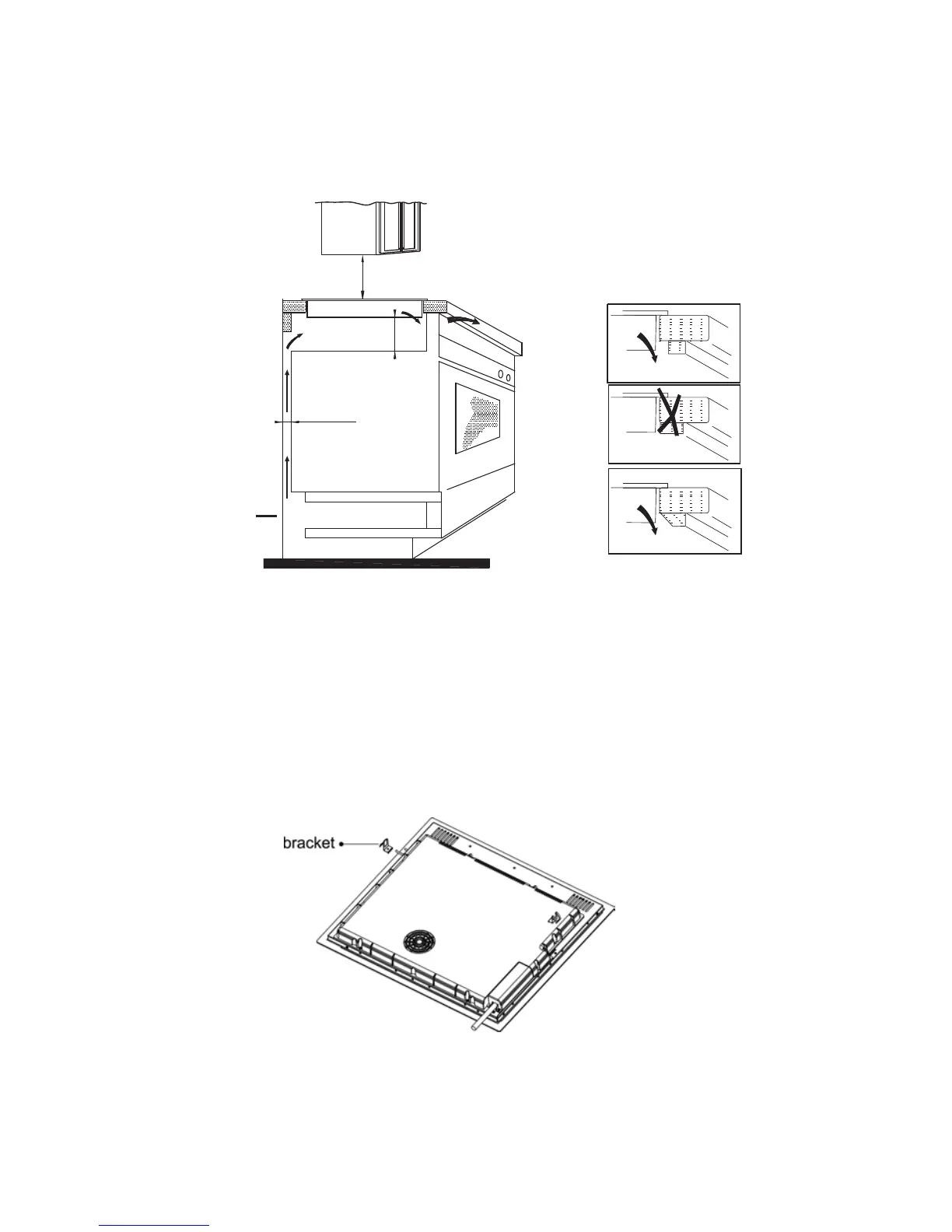 Nota: La distancia de la seguridad entre la placa y la alacena de encima de la placa