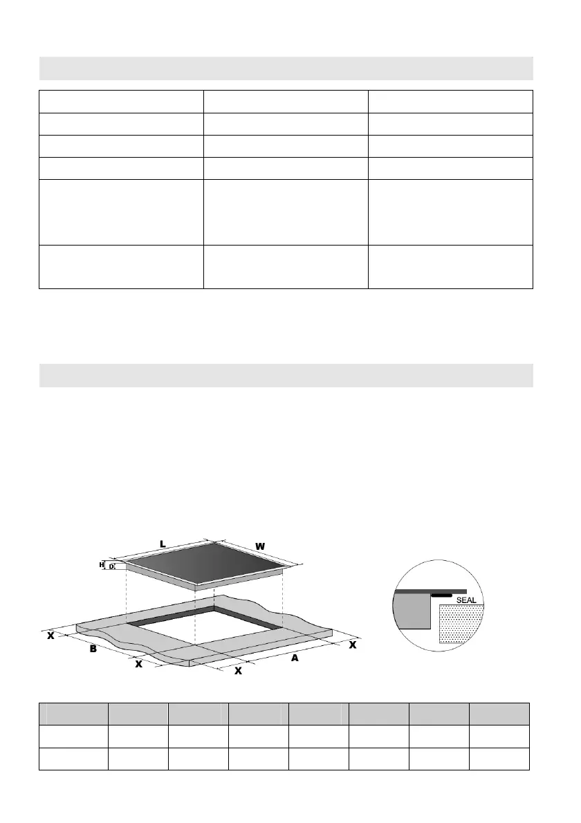 mínimo de 30mm. Por favor seleccione un material de la encimera resistente al