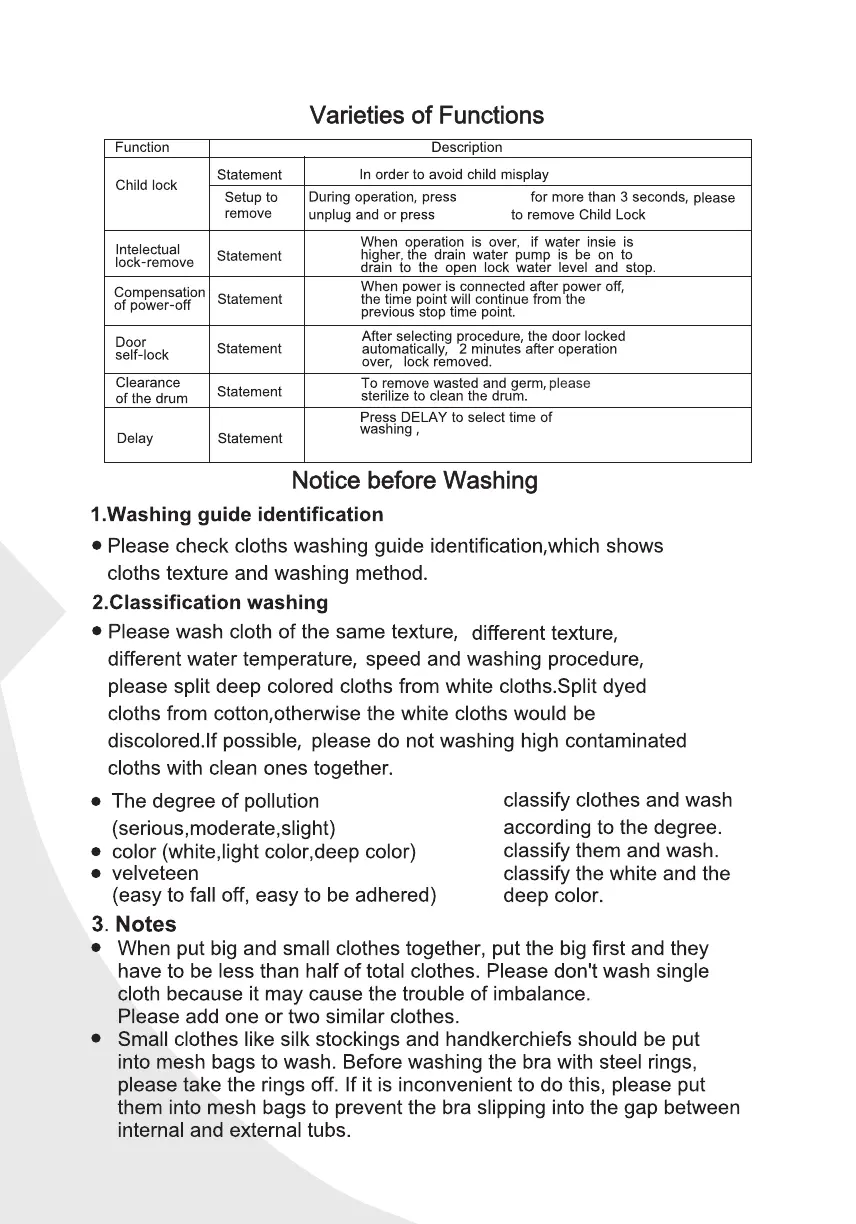 Svan SVL600 - Varieties of Functions; Child Lock Function; Intellectual Lock Removal; Power-Off Compensation