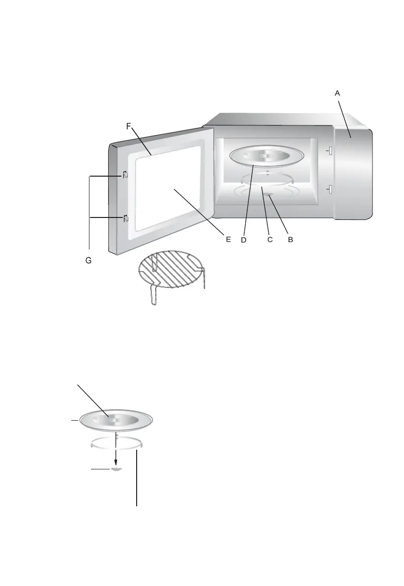 O prato de vidro e o suporte do prato giratório
