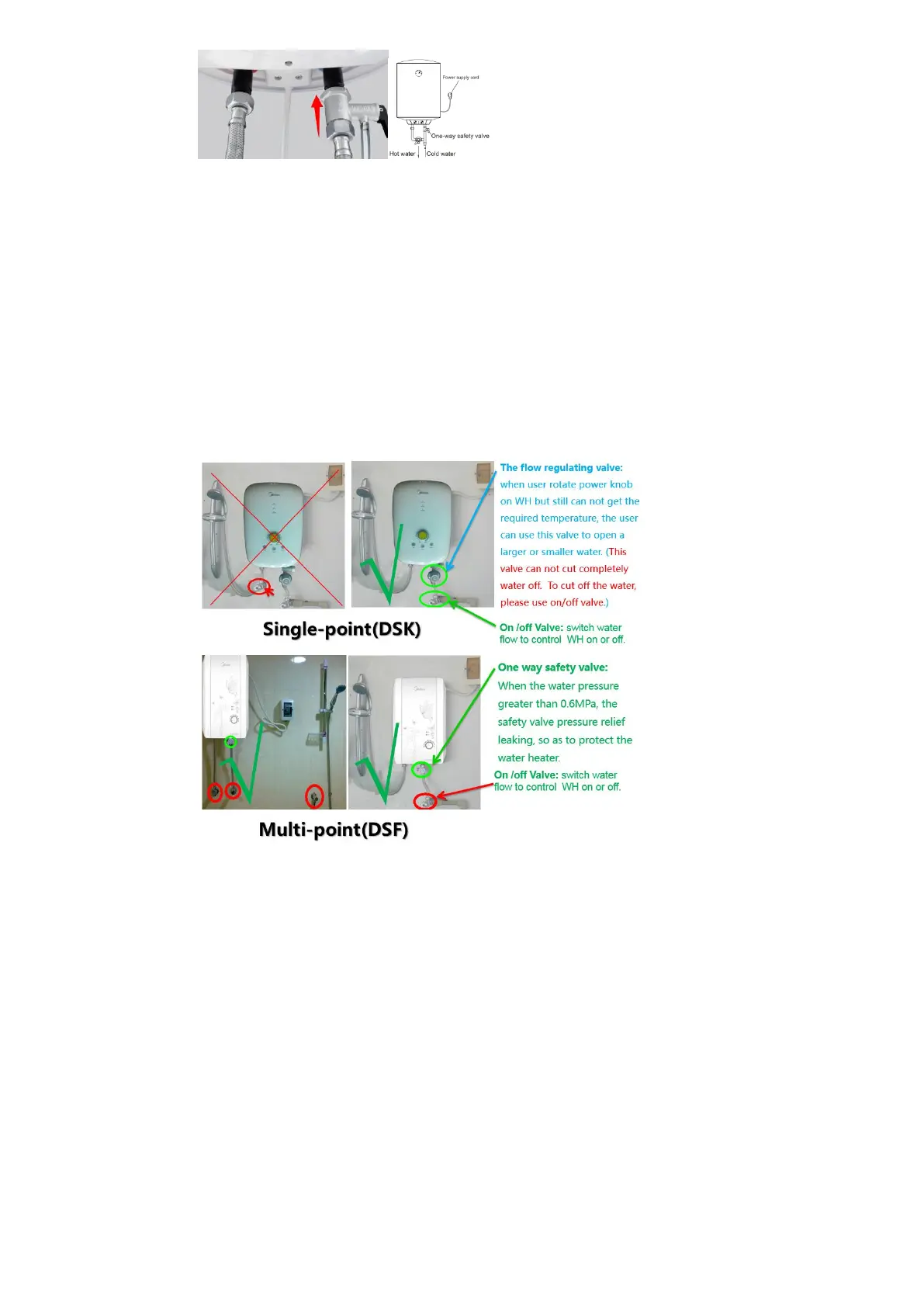 2. Después de la instalación del calentador de agua eléctrico, el instalador deberá abrir la válvula de
