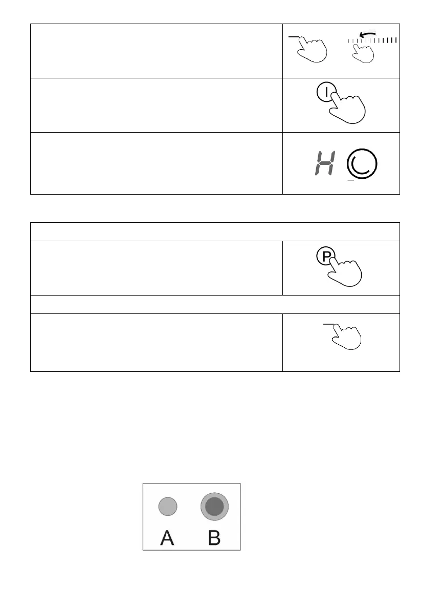 Turn the cooking zone off by touching the MINUS (2) to “