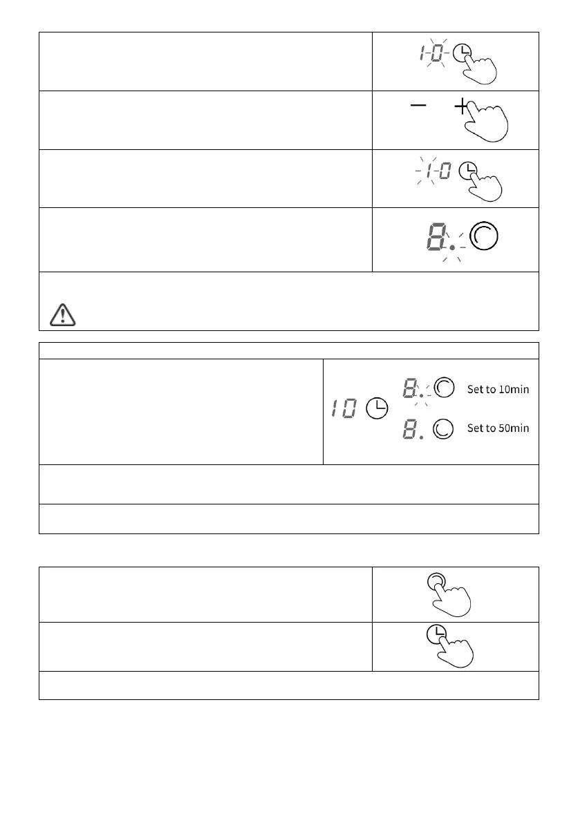 Touch the heating zone selection control, the corresponding timer will be shown in the