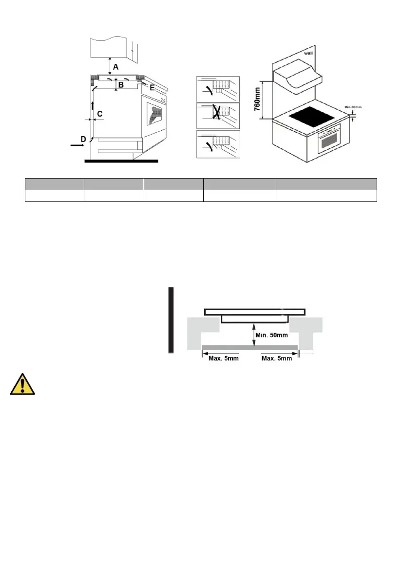 insert, fixed by screws, at a minimum distance of 50mm from the bottom of the hob.