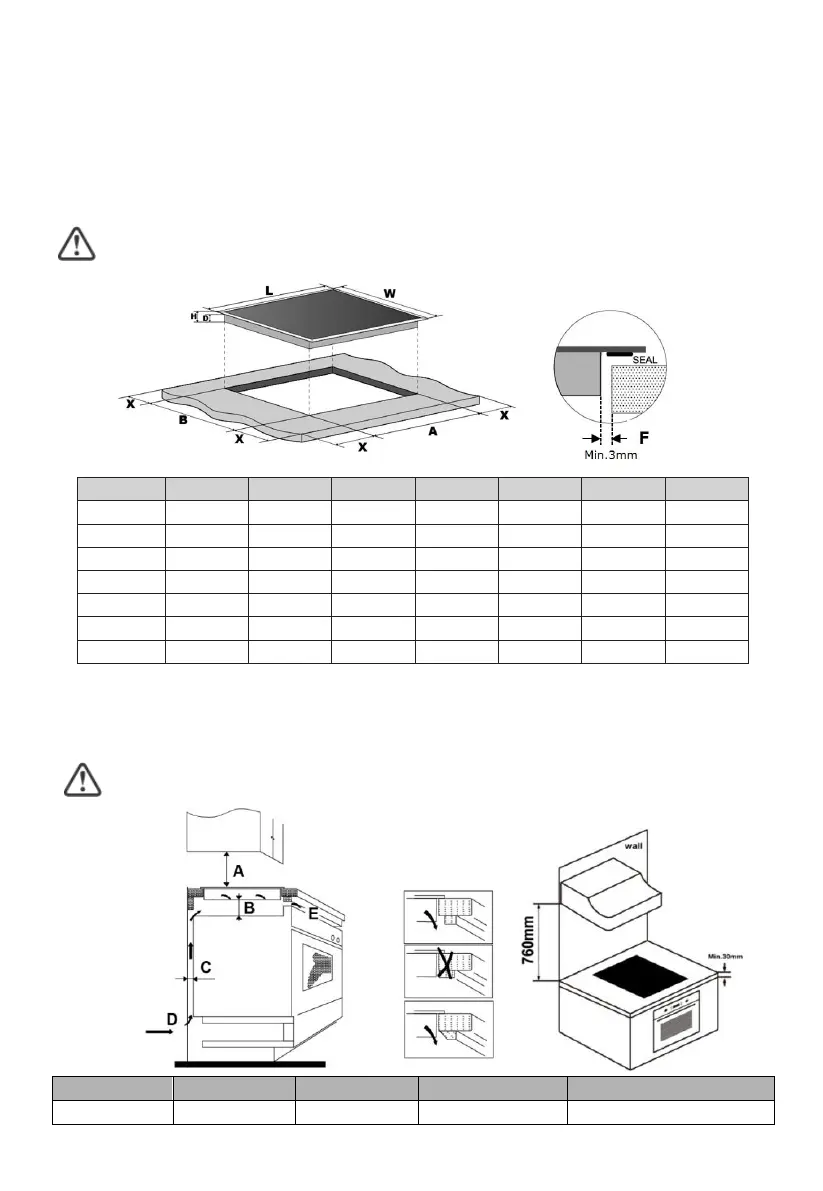 Nota: La distancia de seguridad entre la vitrocerámica y los armarios situados encima