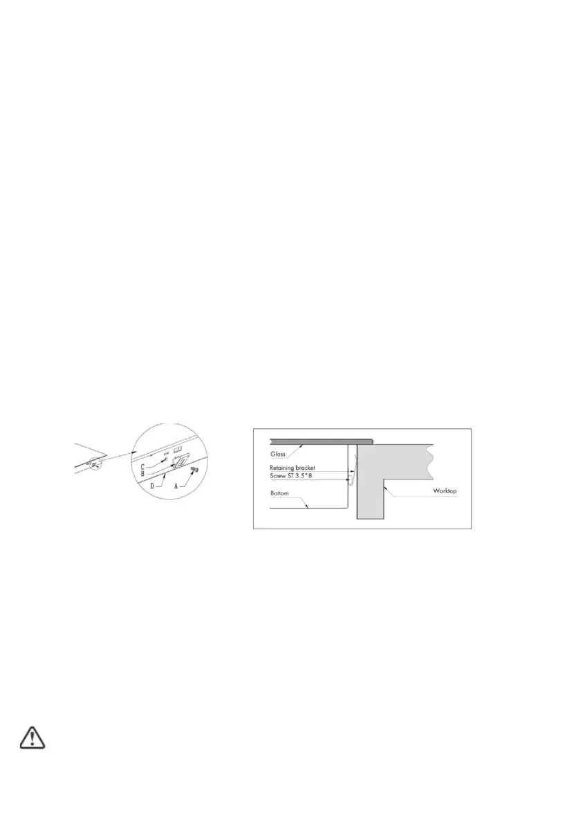 Después de su instalación, fije la cocina en la superficie de instalación atornillando los 2 soportes