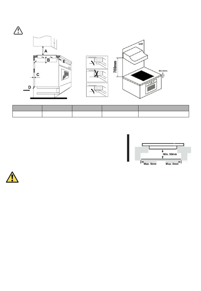 Se a placa for instalada sobre um forno, o forno deve ter um ventilador.