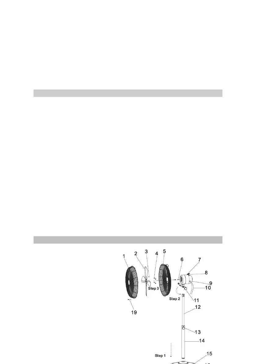 6. The fan should be placed on a flat and stable surface when
