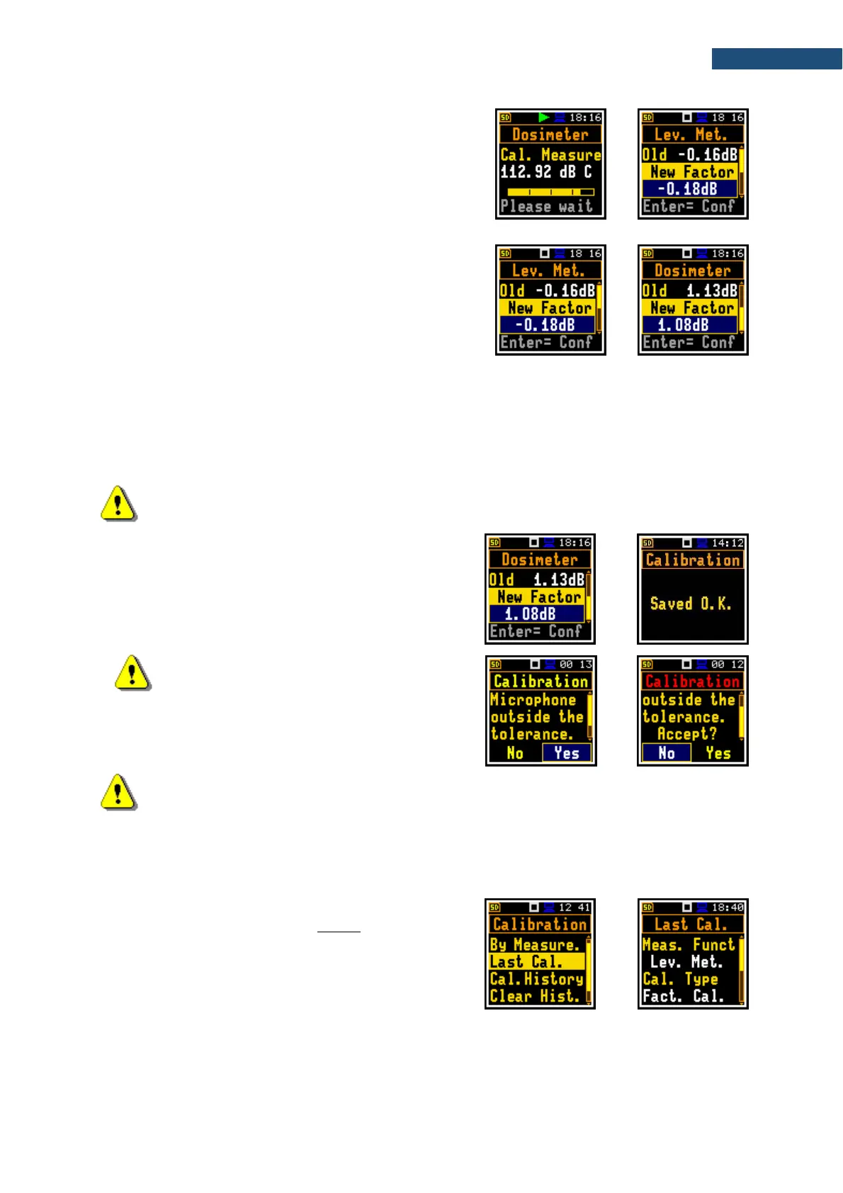 performed (Level Meter or Dosimeter), type of calibration