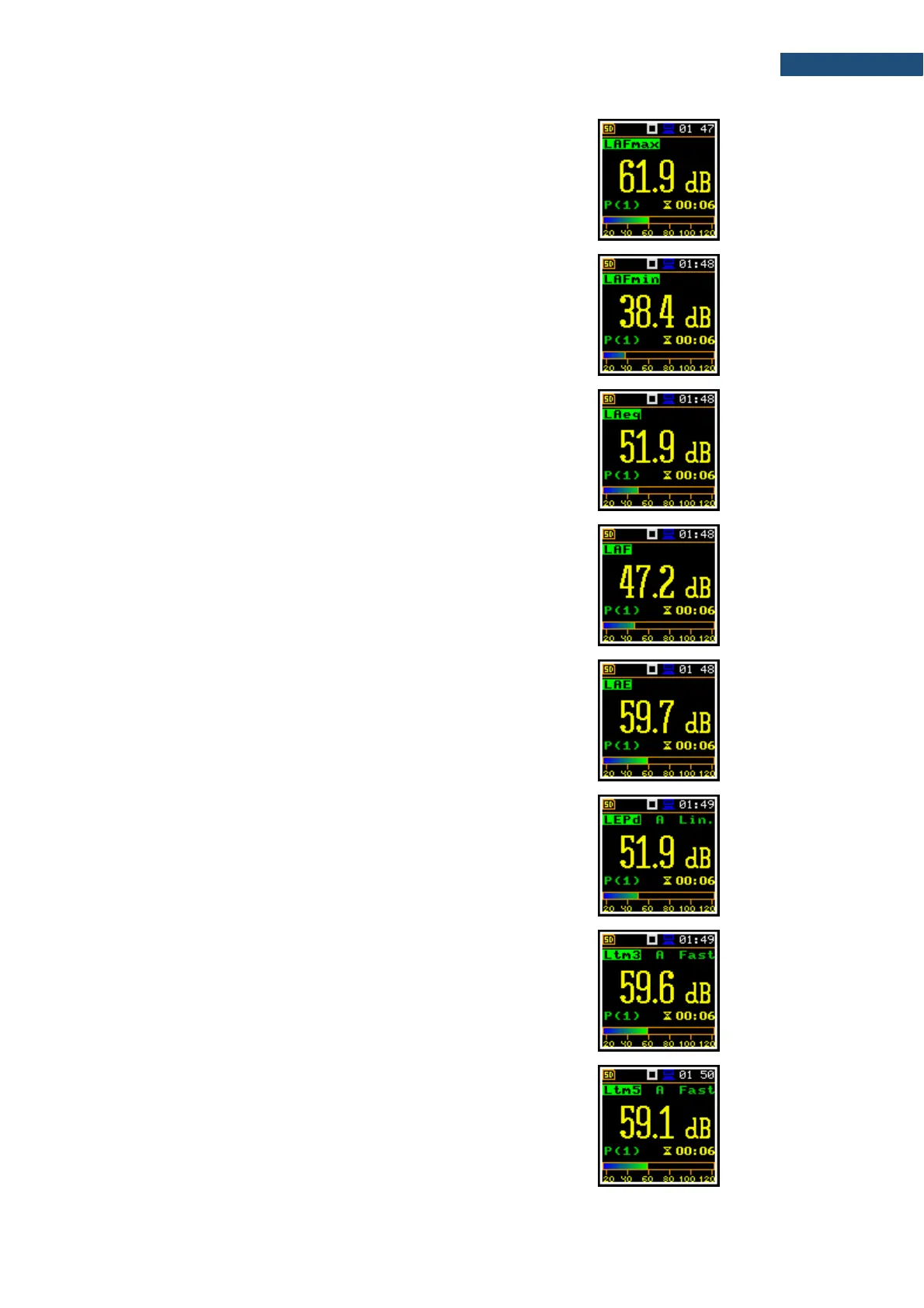 weighting F, S, I and displayed as LAF, LAS, LCF,