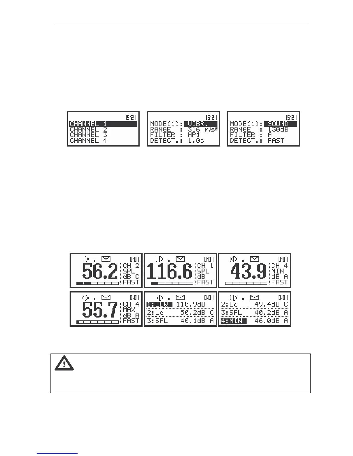 2. As 1/3 OCTAVE analyser the instrument operates in two input ranges 105 dB and 130 dB, which can