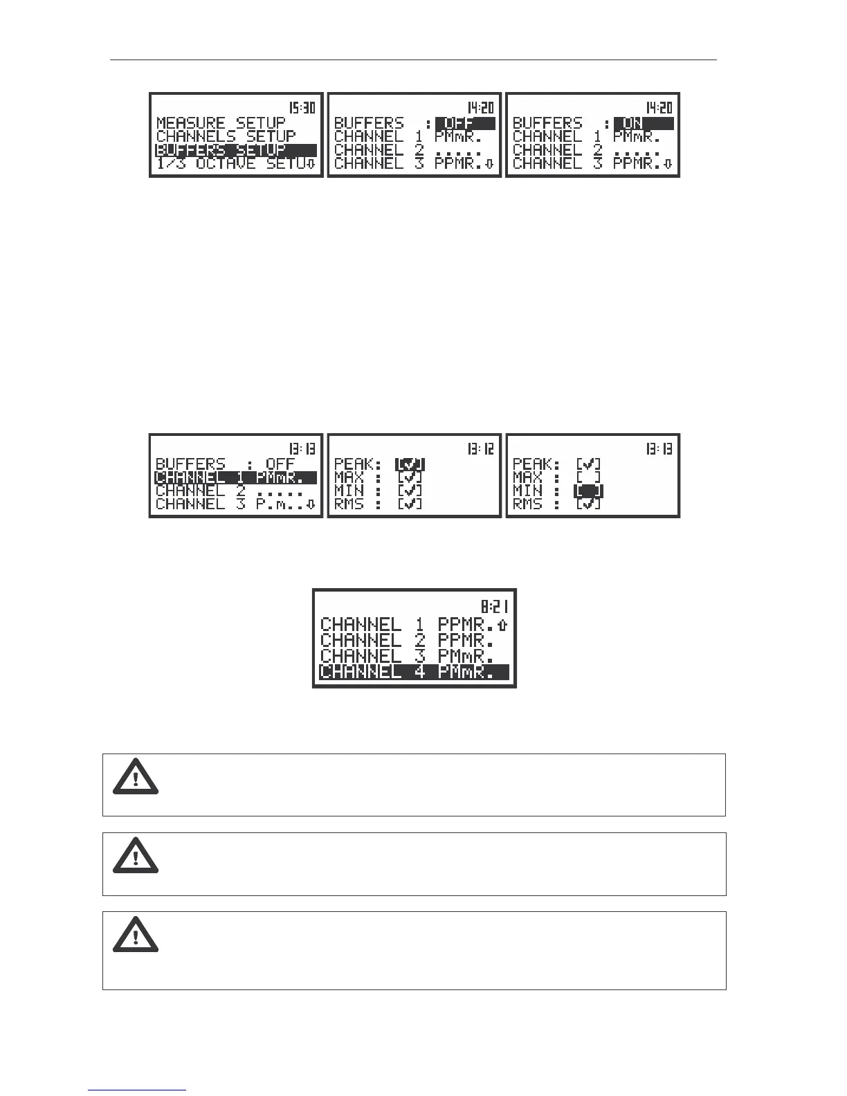 case of sound measurement. The selection of the parameter from the CHANNEL x sub-list is made by