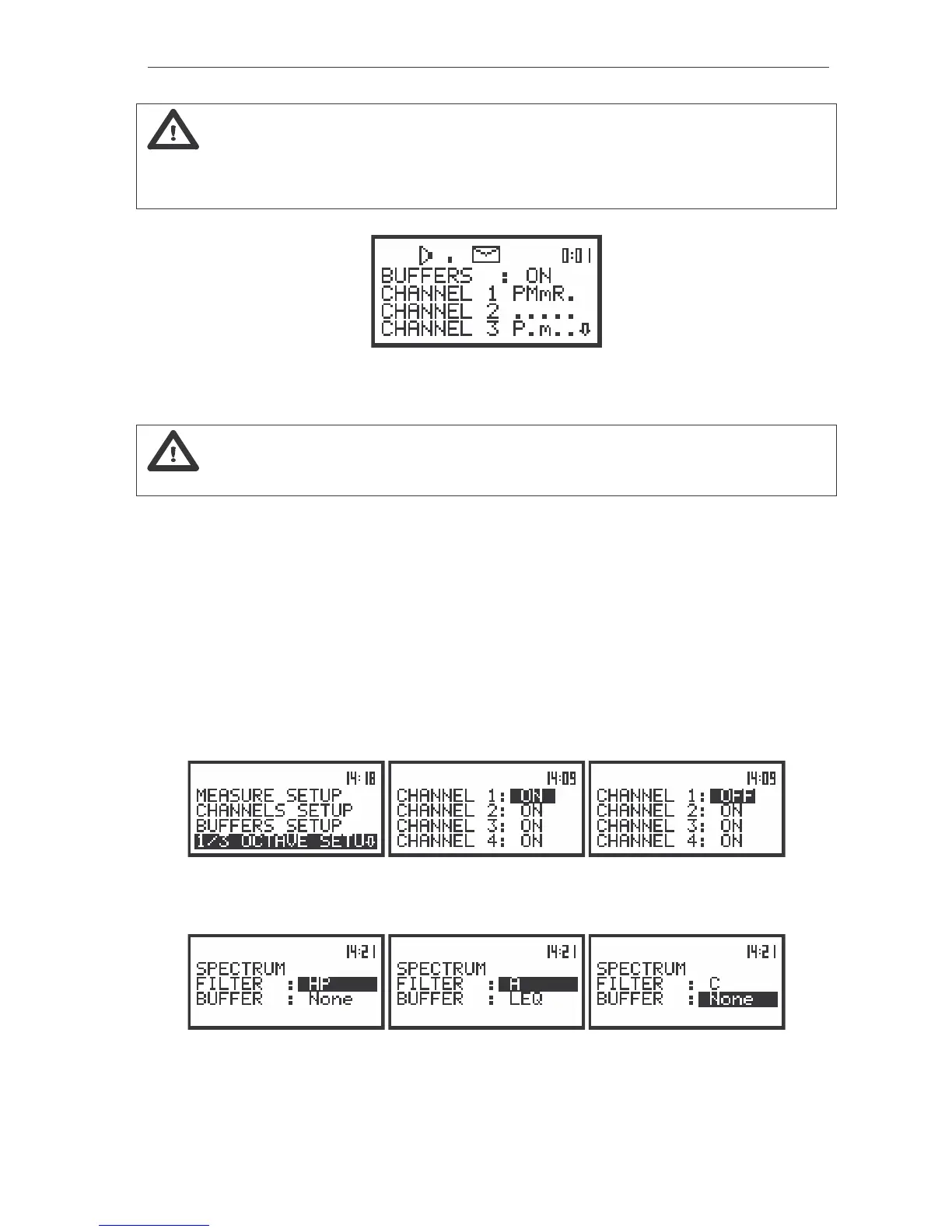Notice: All other settings of the instrument are common for 1/3 OCTAVE analyser and the
