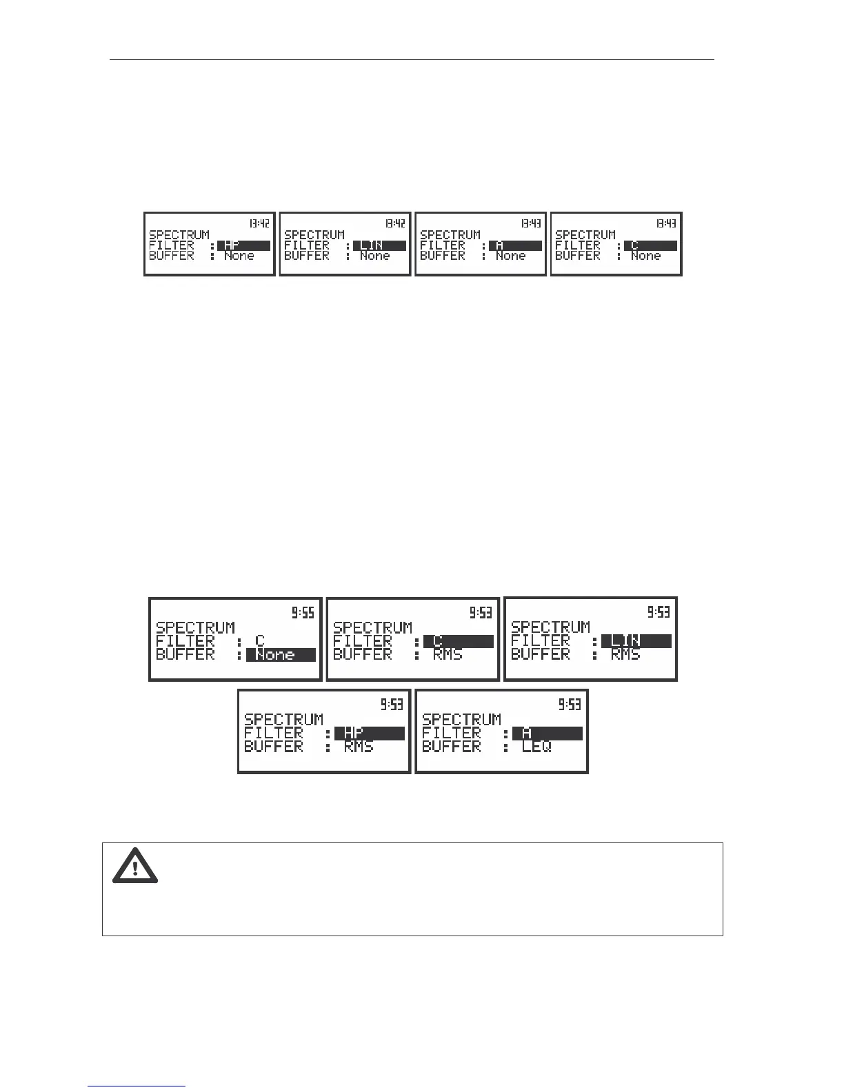 SPECTRUM) opened, the selection of the weighting filter