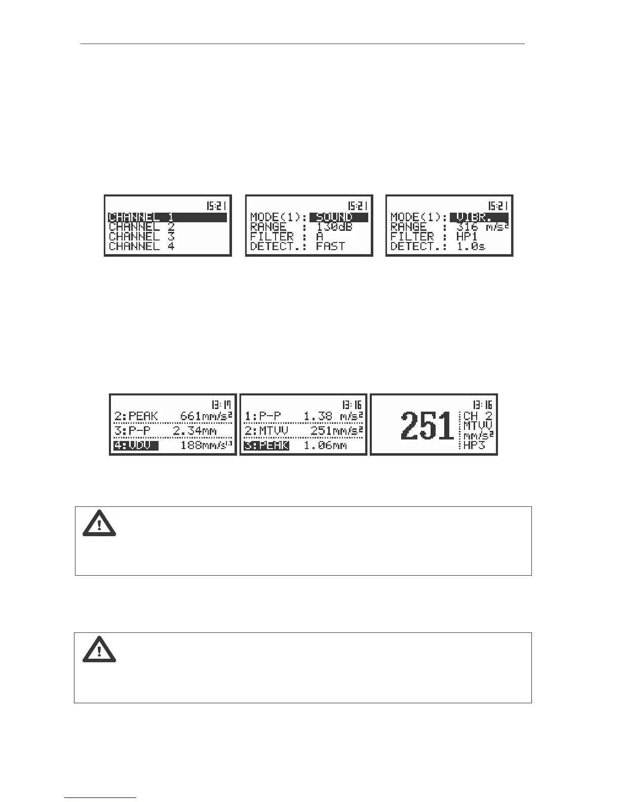case of vibration signals the VIBRATION METER option should be selected Then by pressing <