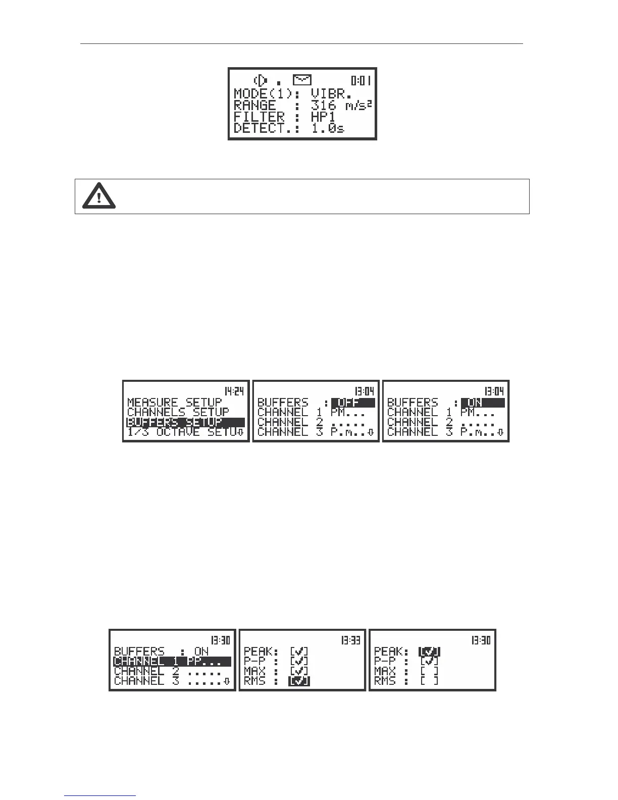 case of vibration measurement. The selection of the parameter from the CHANNEL x sub-list is made by
