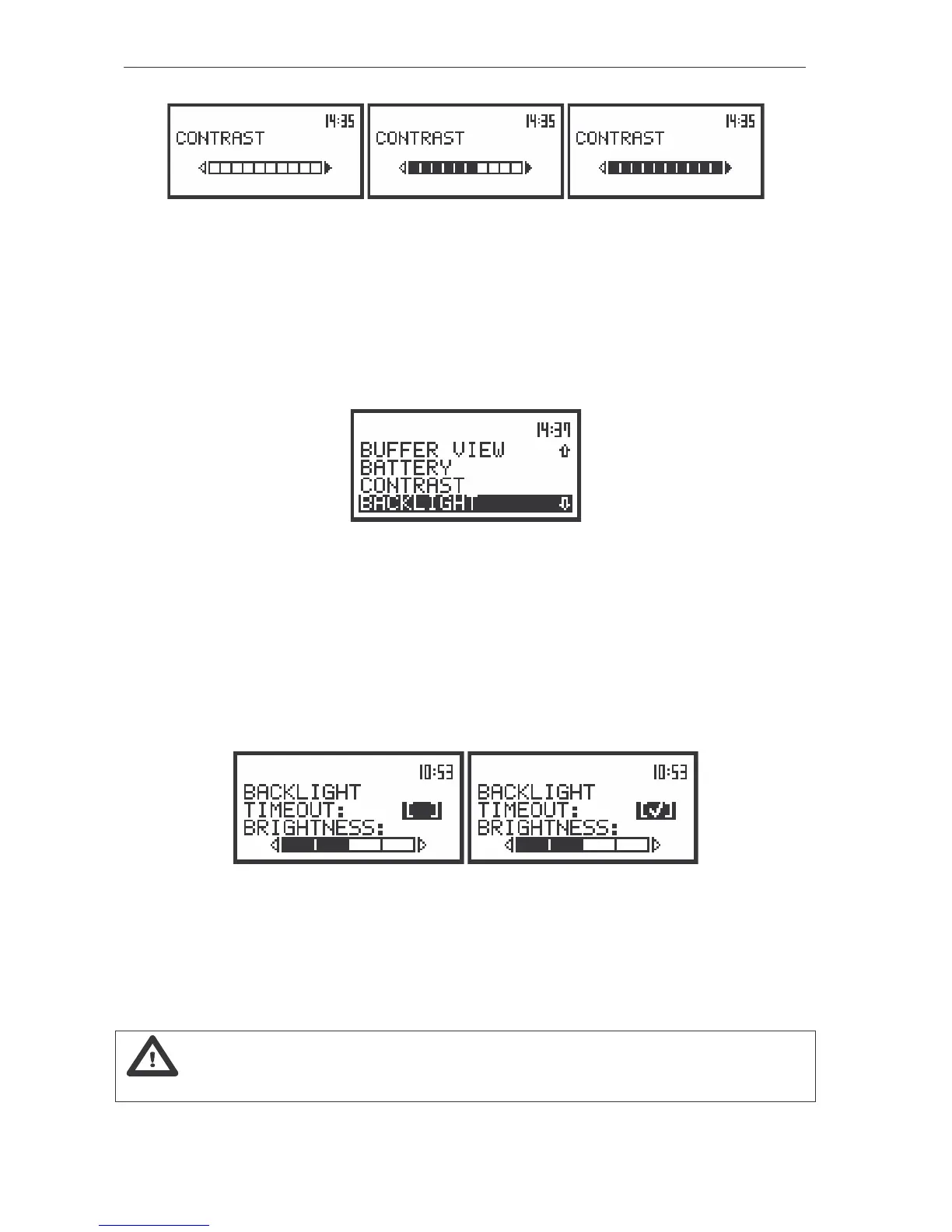 The BACKLIGHT (path: MENU / DISPLAY / BACKLIGHT) sub-list enables one to set the parameters