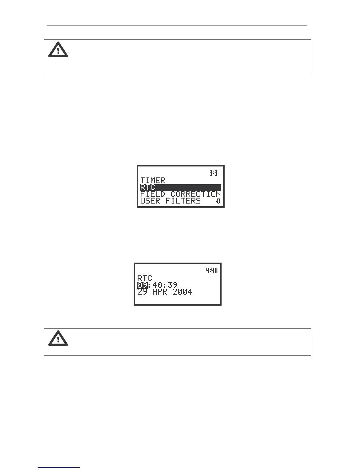 Programming of the instrument’s internal Real Time Clock - RTC