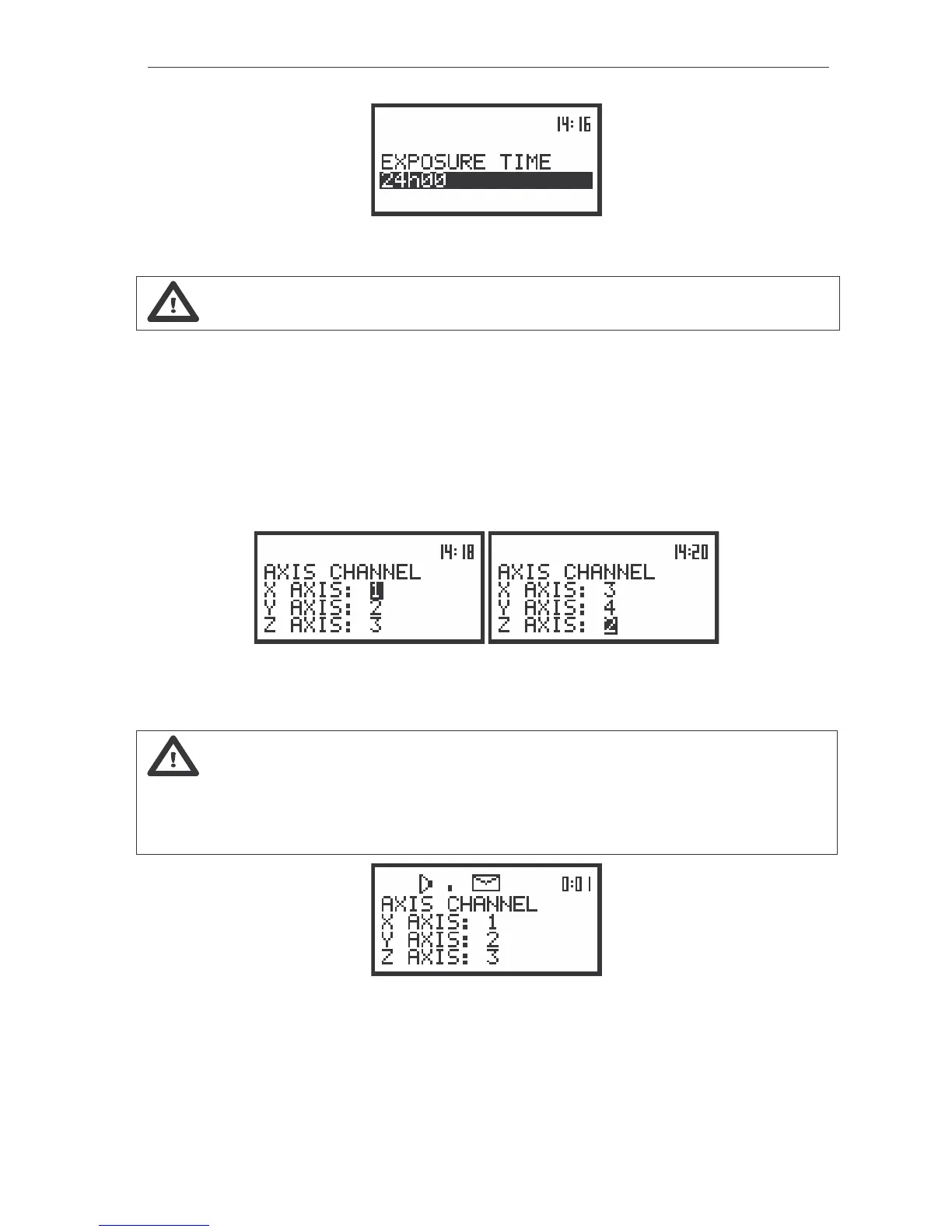 In the AXIS SETUP position (path: MENU / SETUP / HAV/WBV DOSE / AXIS SETUP) the user can