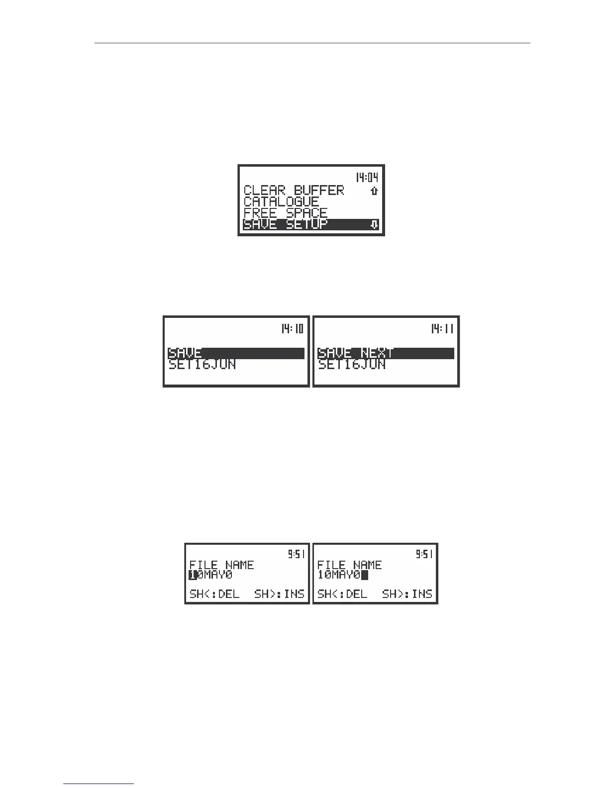 Saving setup in the instrument’s memory – SAVE SETUP and SAVE SETUP NEXT