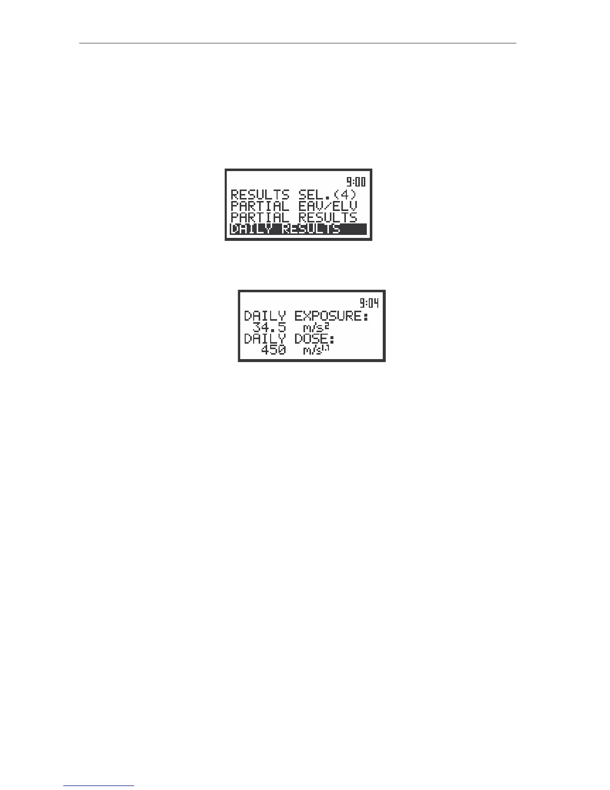 WBV CALCULATOR / DAILY EXPOSURE) is used to display DAILY EXPOSURE and DAILY DOSE results,