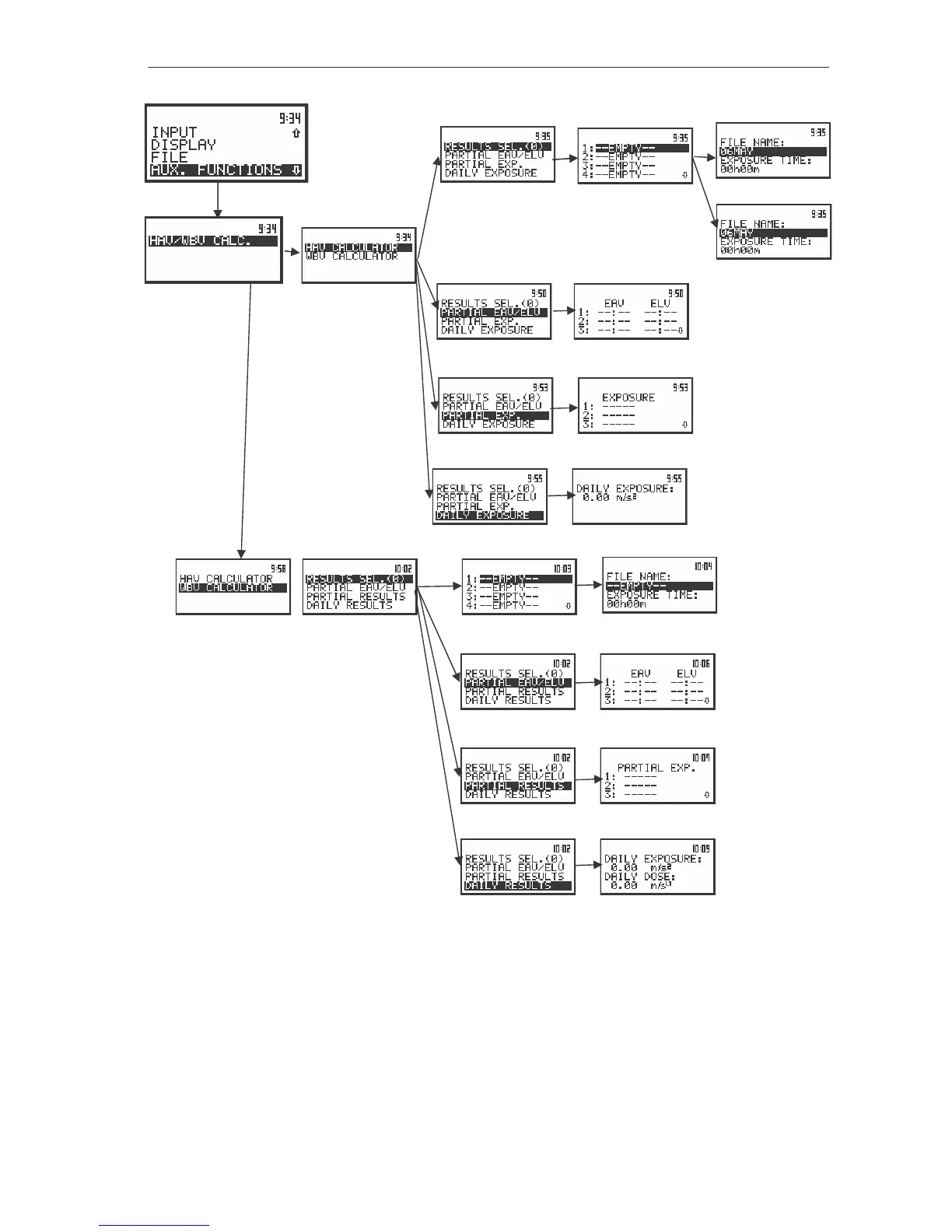 Control diagram of the AUX. FUNCTION list