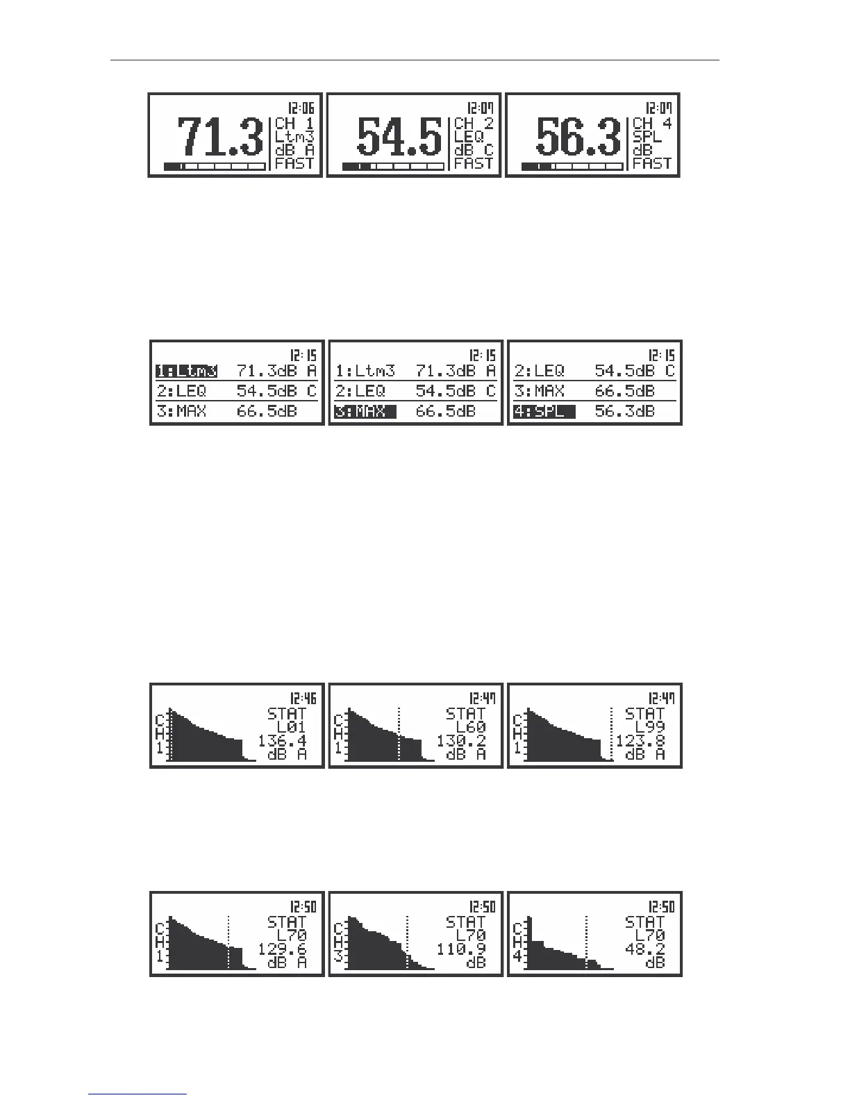 separated by two straight horizontal lines. These lines are doted in other modes than sound level meter.