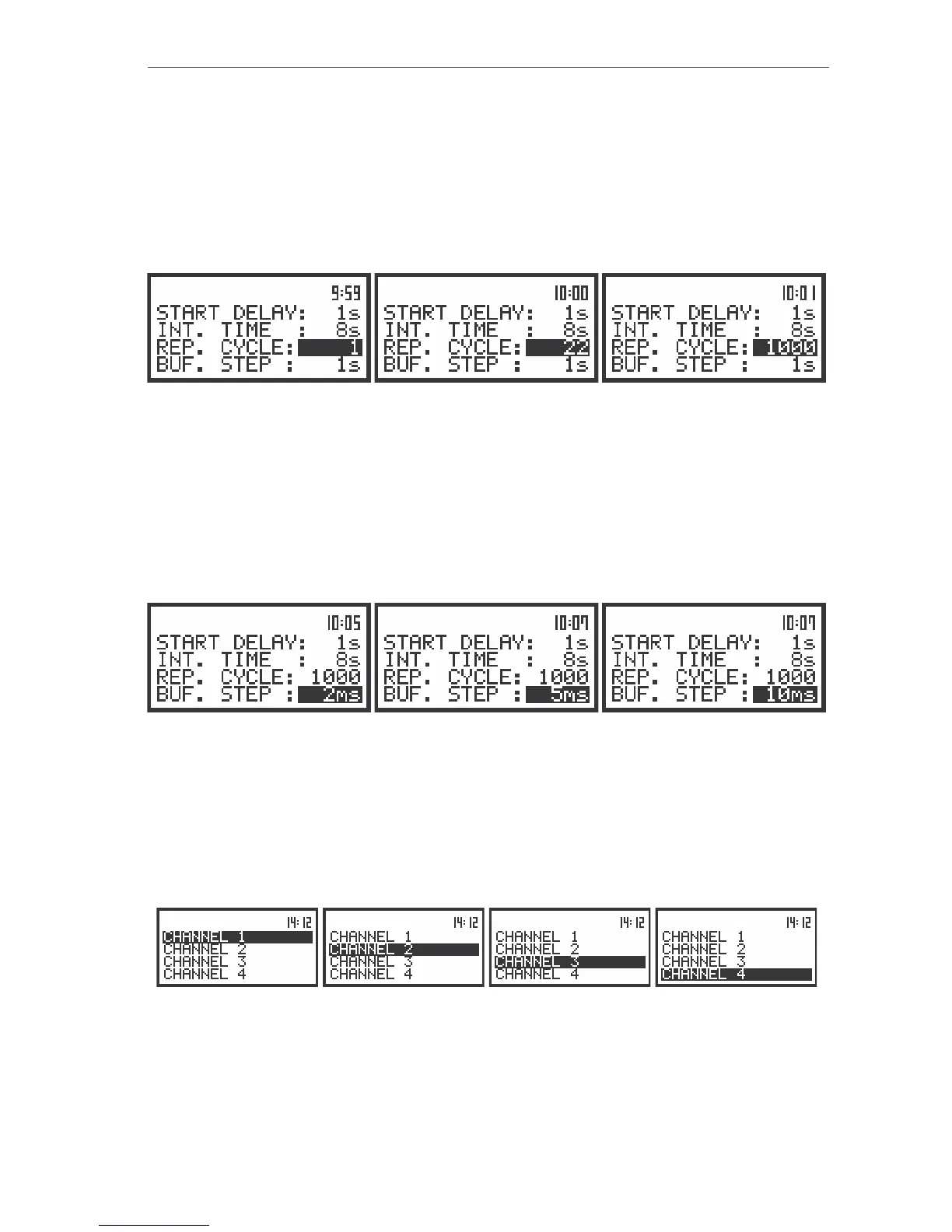 The view of the displays during the setting of the REP. CYCLE (path: MENU / INPUT / MEASURE SETUP);