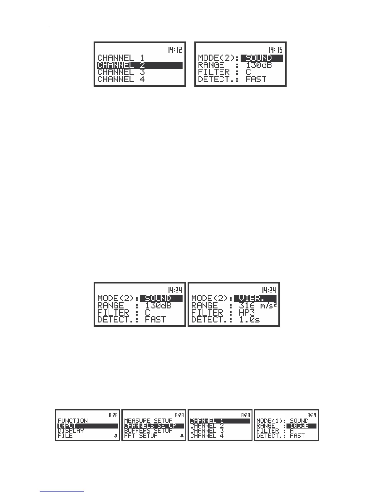 measurements, the user has to select in CHANNEL x sub-list the SOUND mode in the MODE position.