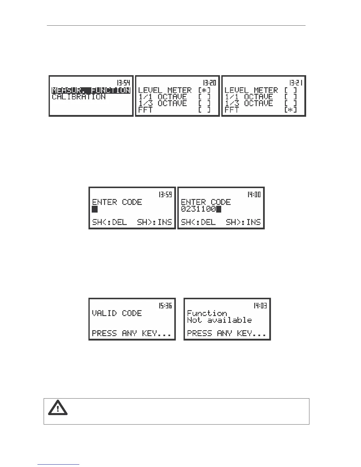 <ENTER> push-button. If the entered code was wrong the message is displayed and the instrument waits