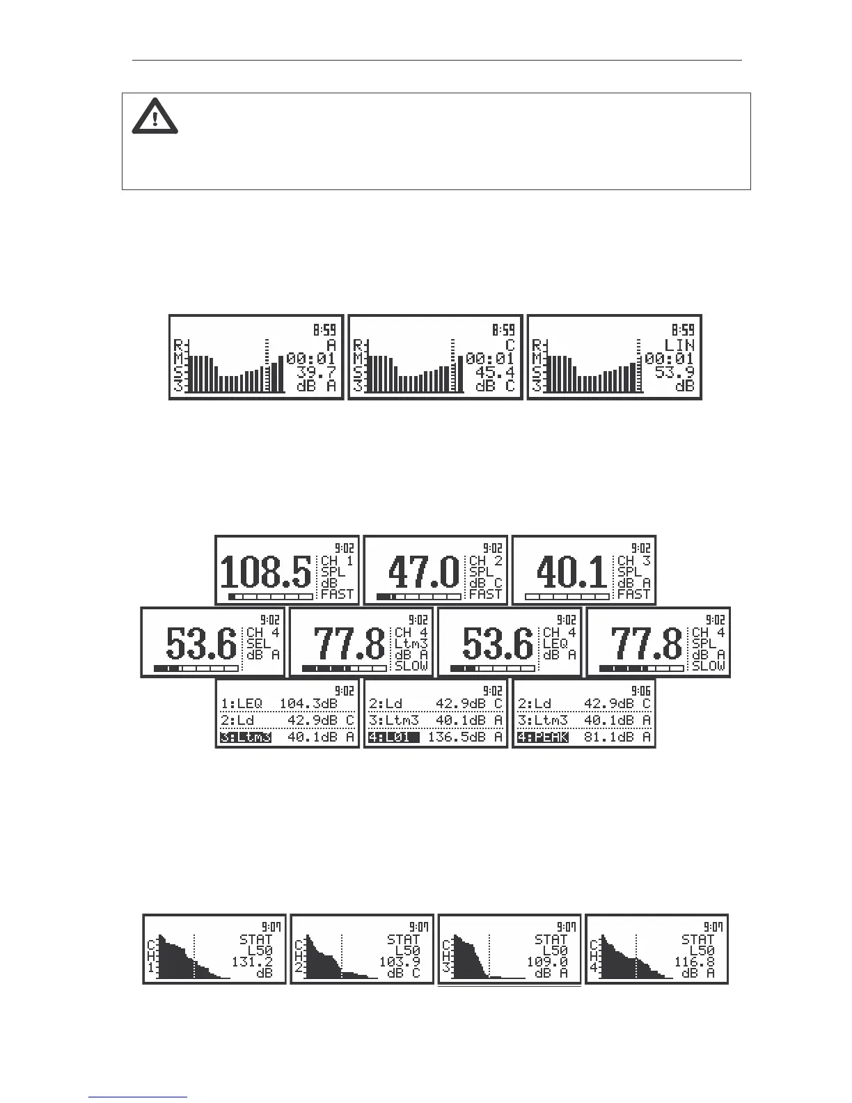 the units, and the weighting filter (dB A, dB C or dB in the case of the LIN) and the numerical value are