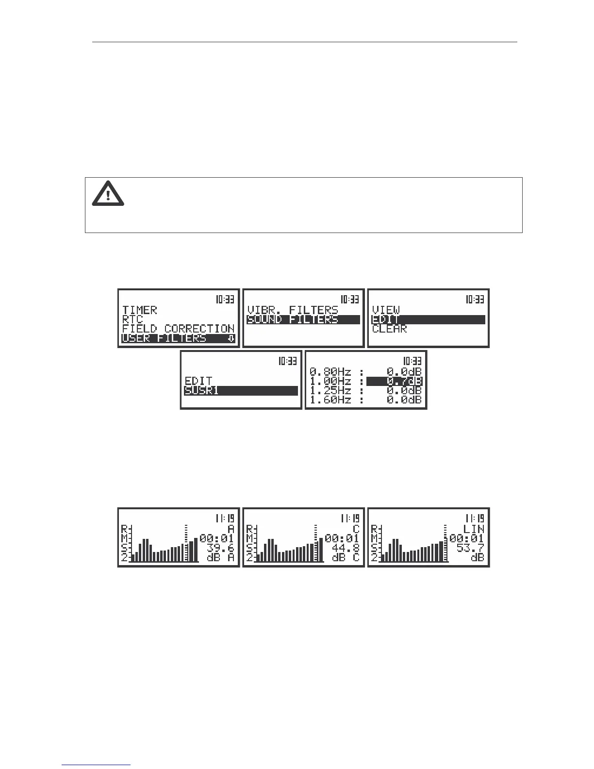 1/1 OCTAVE analysis can be performed taking into account the USER FILTERS coefficients set in