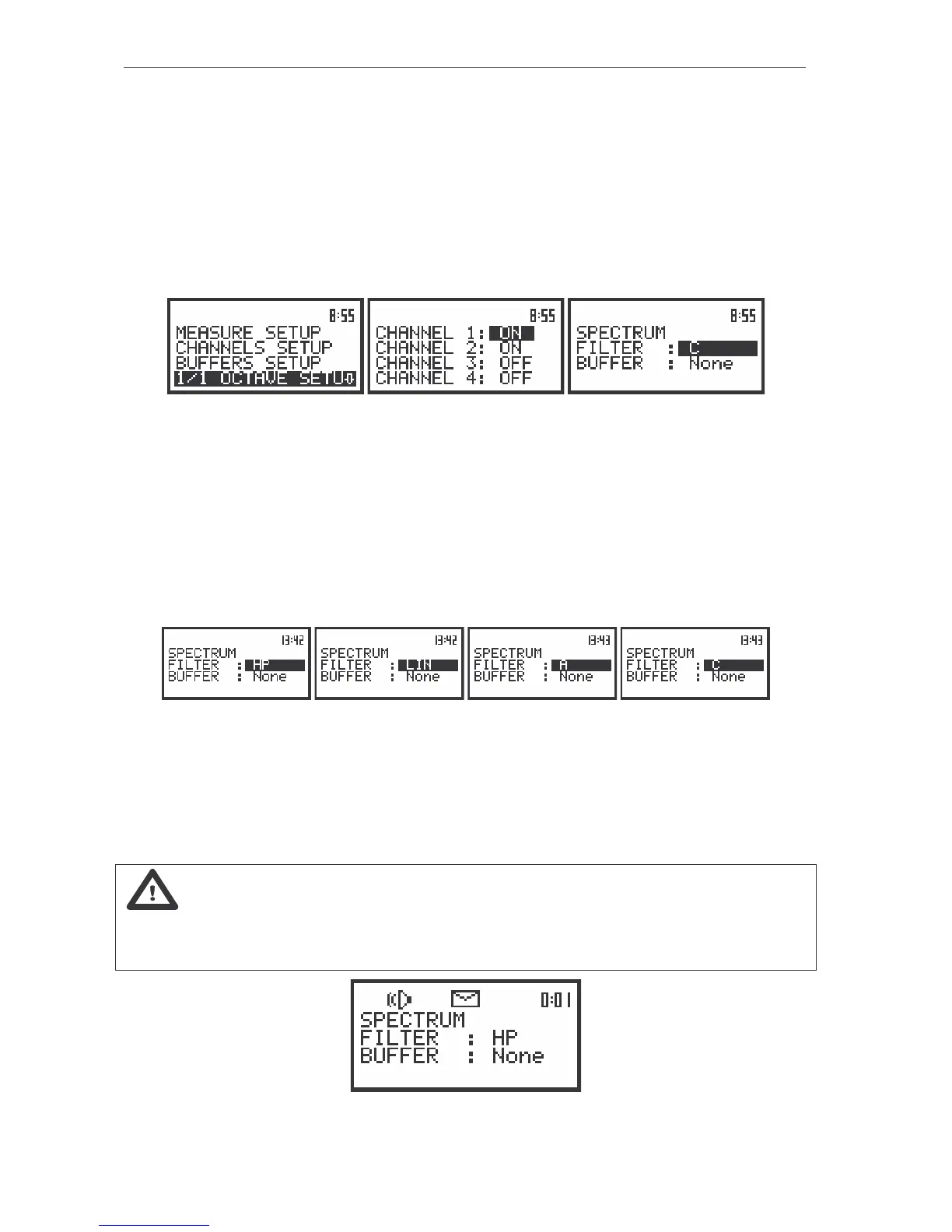 selection and close the sub-list. The return to the 1/1 OCTAVE SETUP sub-list is made also after pressing