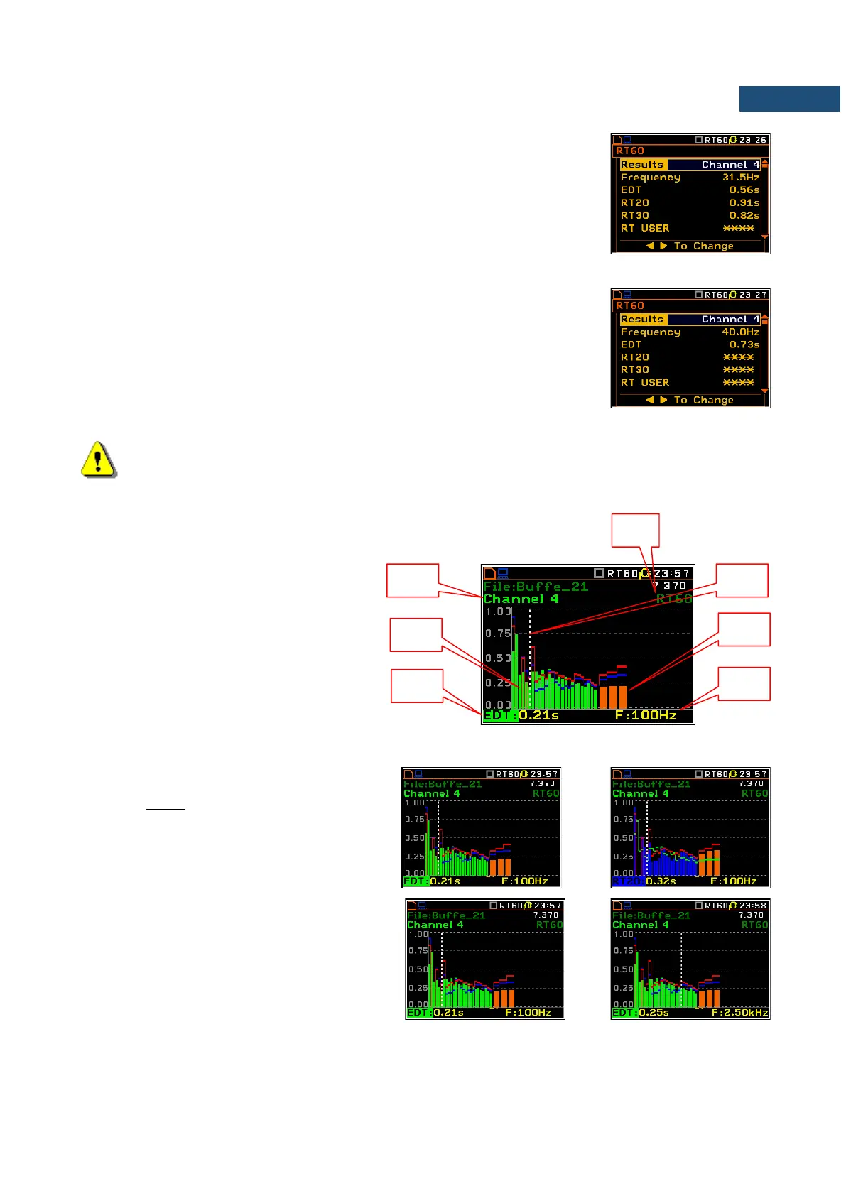 The user may scroll all results of the RT60 analysis with the use of ▲ / ▼ key.