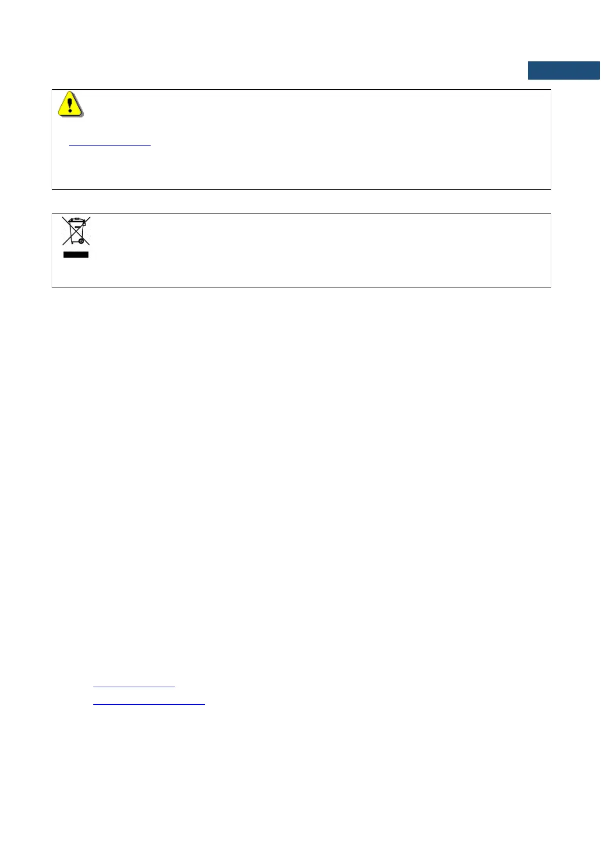 WEEE Note: Do not throw the device away with the unsorted municipal waste at the end of its life.
