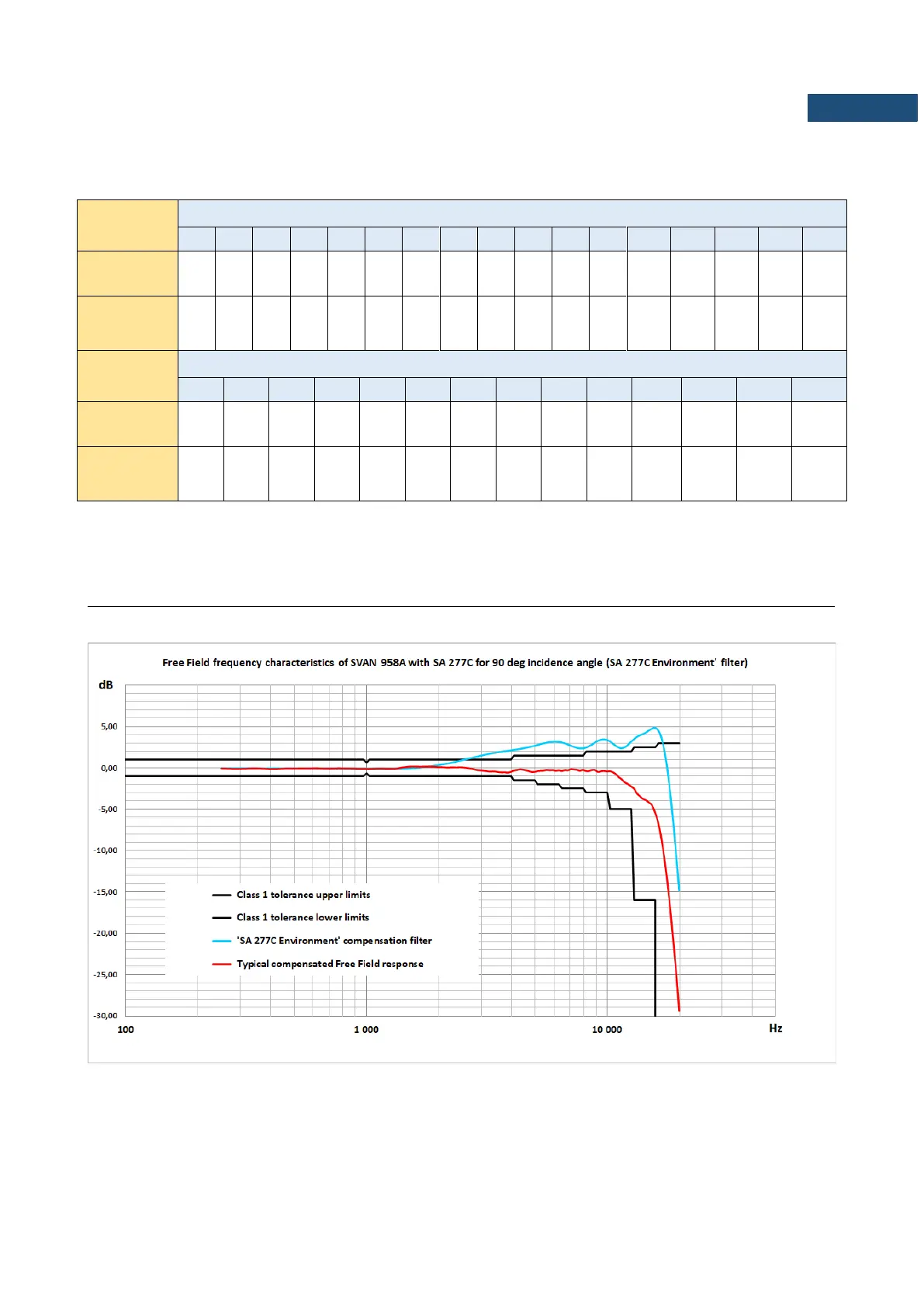 Free Field frequency response of SVAN 958A with SA 277C for 90 deg incidence angle