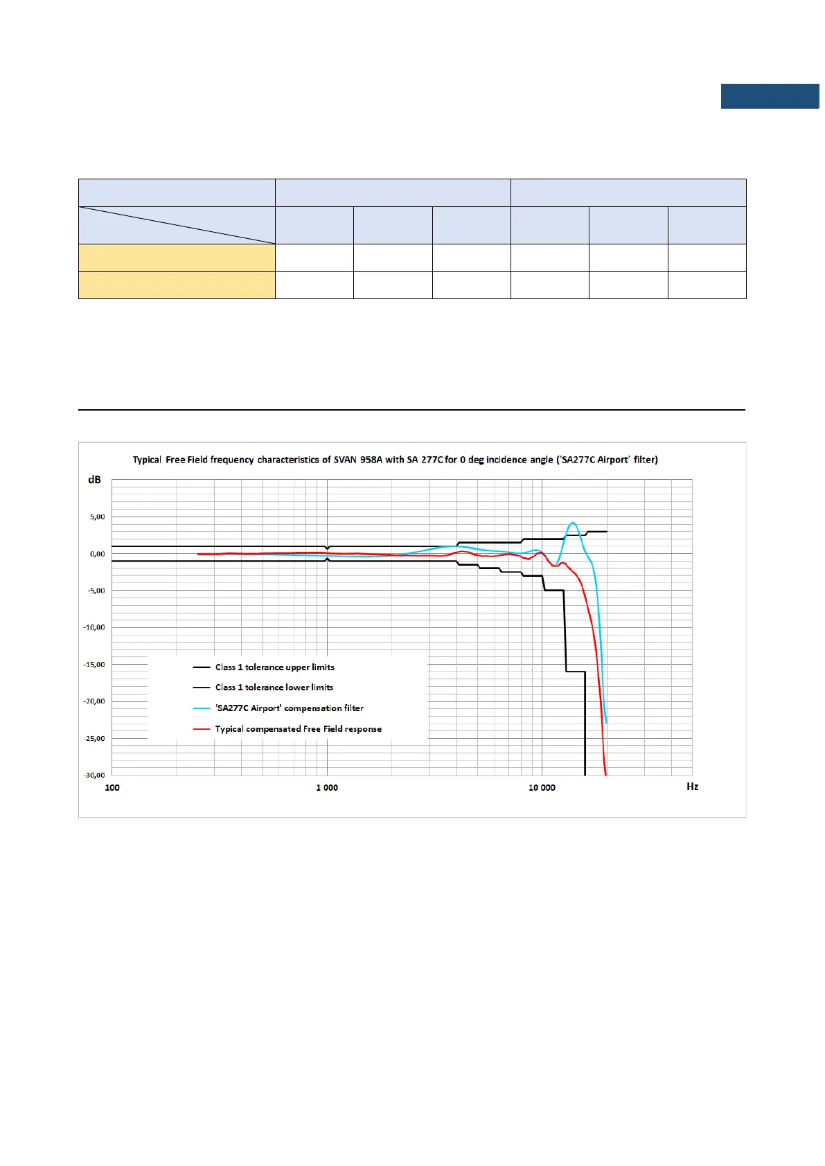 Free Field Frequency response of SVAN 958A with SA 277C for 0 deg incidence angle