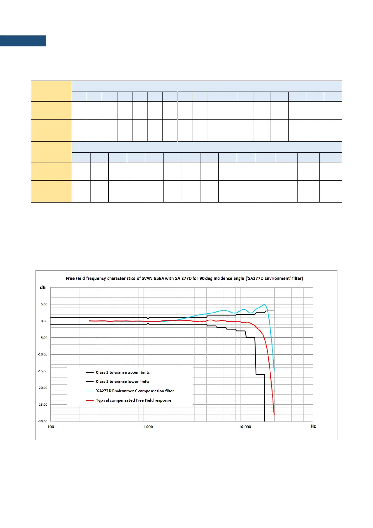 Free Field frequency response of SVAN 958A with SA 277D for 90 deg incidence angle