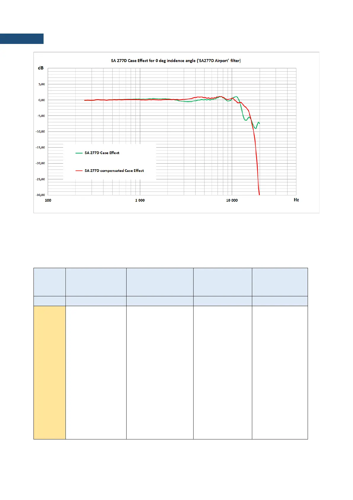 Table C.8.11. Typical Free Field frequency characteristics of SVAN 958A with SA 277D for 0 deg incidence