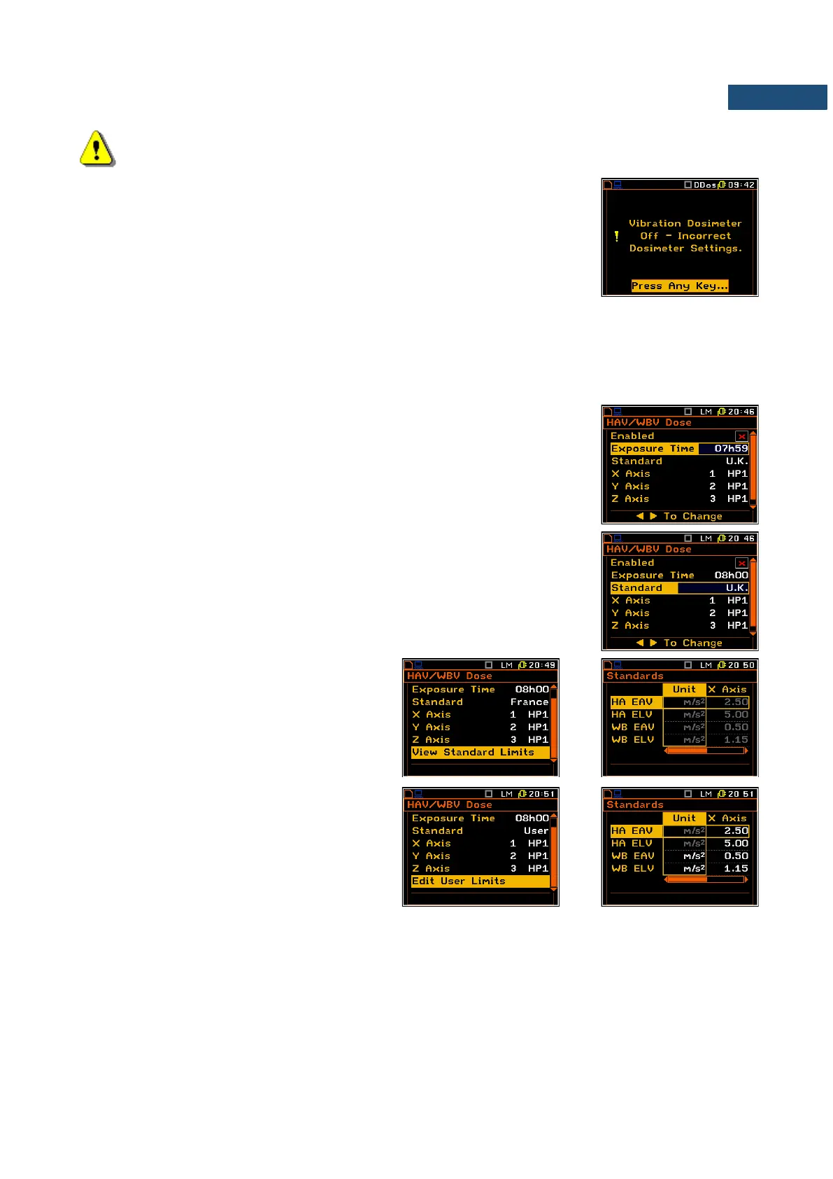 the “Vibration Dosimeter Off - Incorrect Dosimeter Settings” message