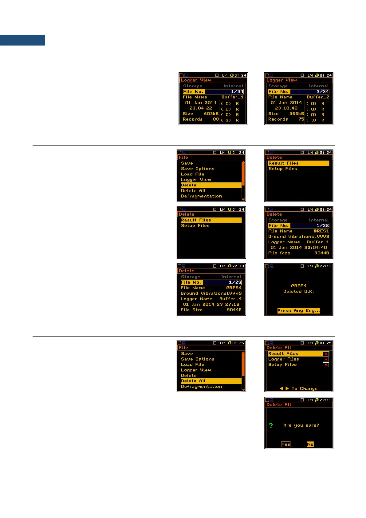 7.6 REMOVING ALL FILES WITH MEASUREMENT RESULTS FROM MEMORY – DELETE ALL