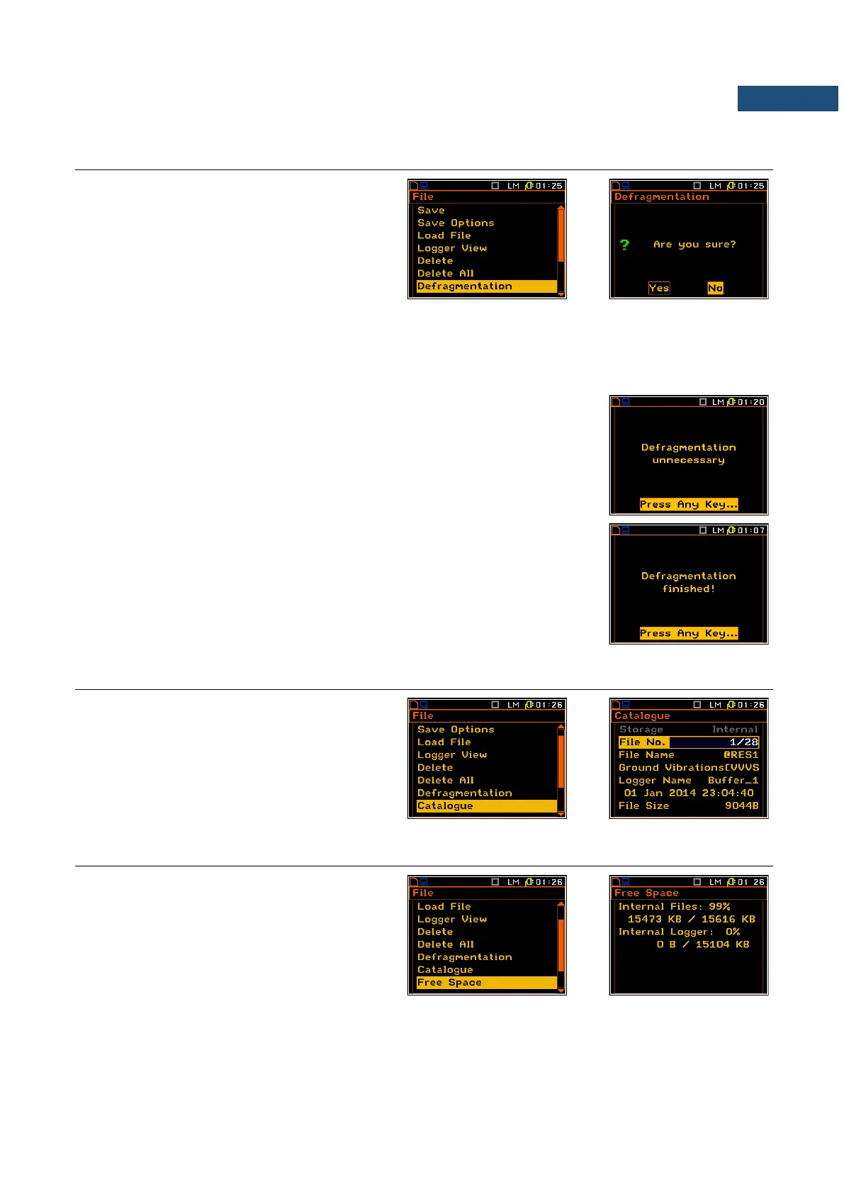 pressing a key it returns to the Defragmentation sub-list.