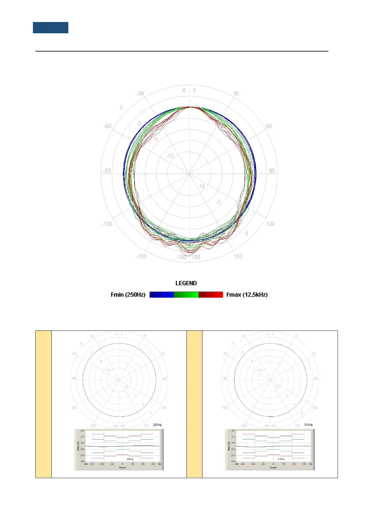 The round charts show the directional characteristic and the charts below shows the errors for particular