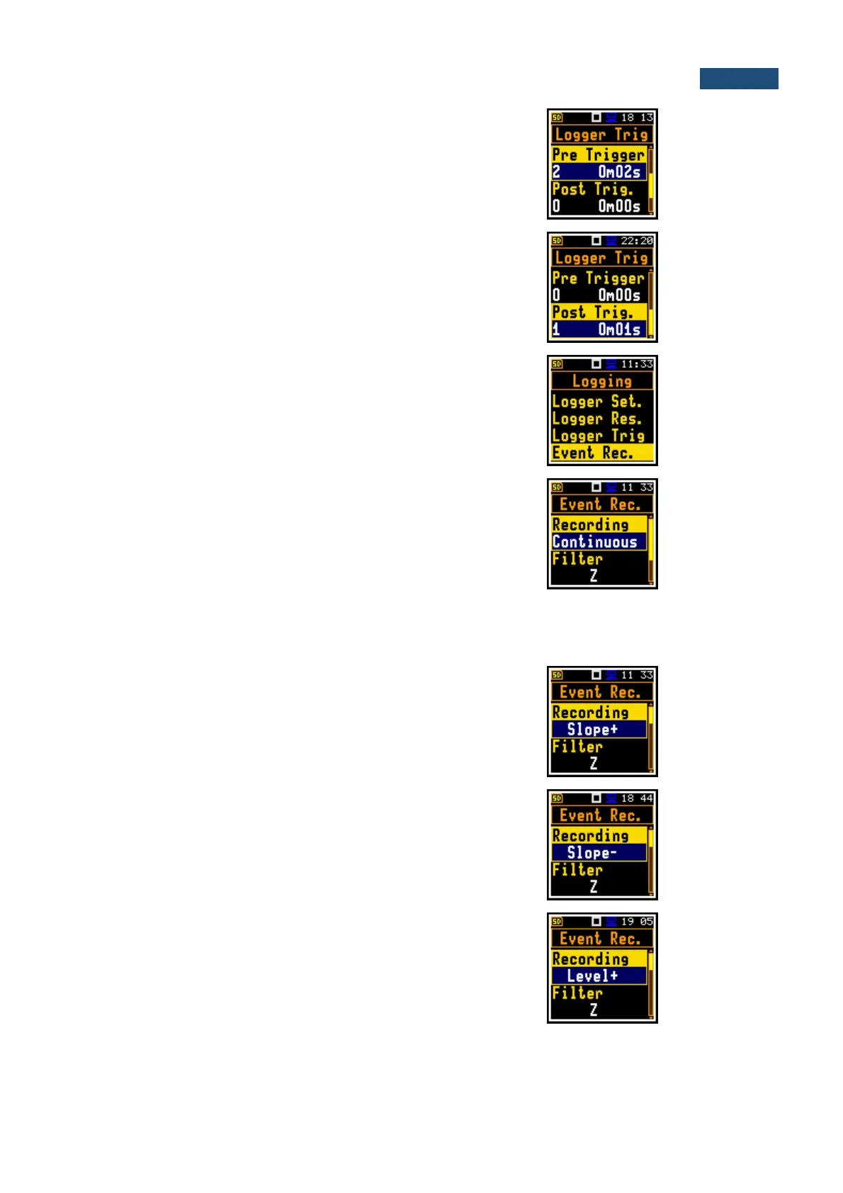 on trigger: Slope +, Slope -, Level +, Level -,