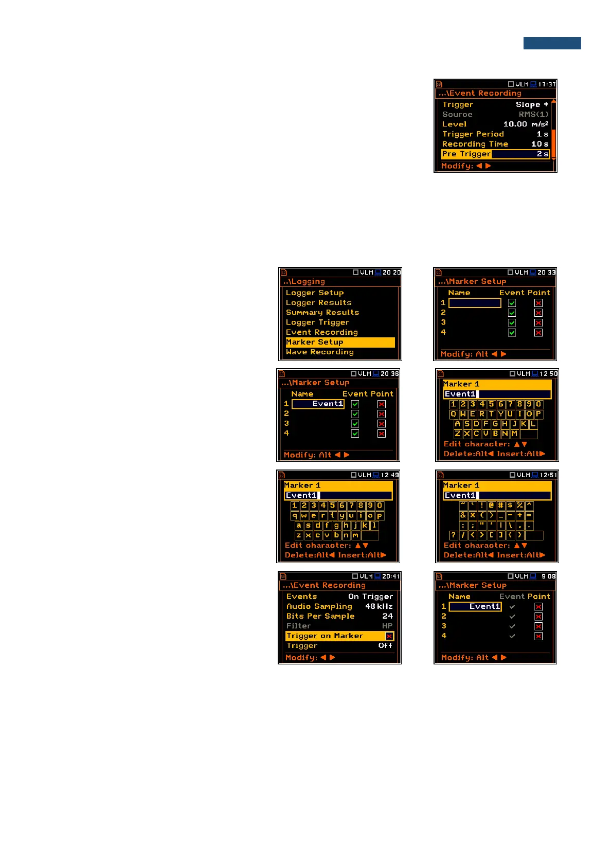 Marker is used to mark (or highlight) special events during the measurement (not typical vibration, ect.) and is