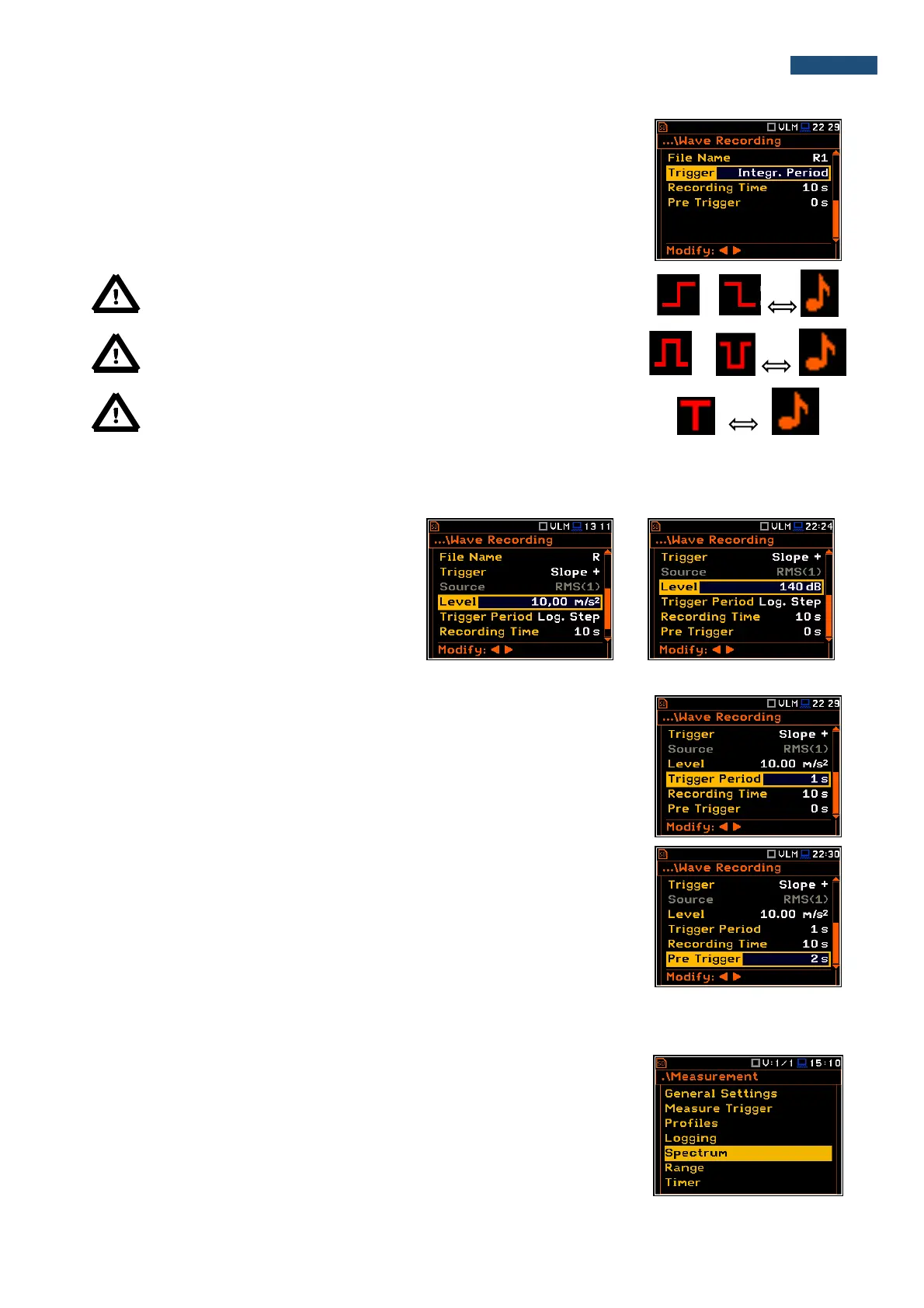 Note: When wave recording is waiting for the slope trigger the “trigger