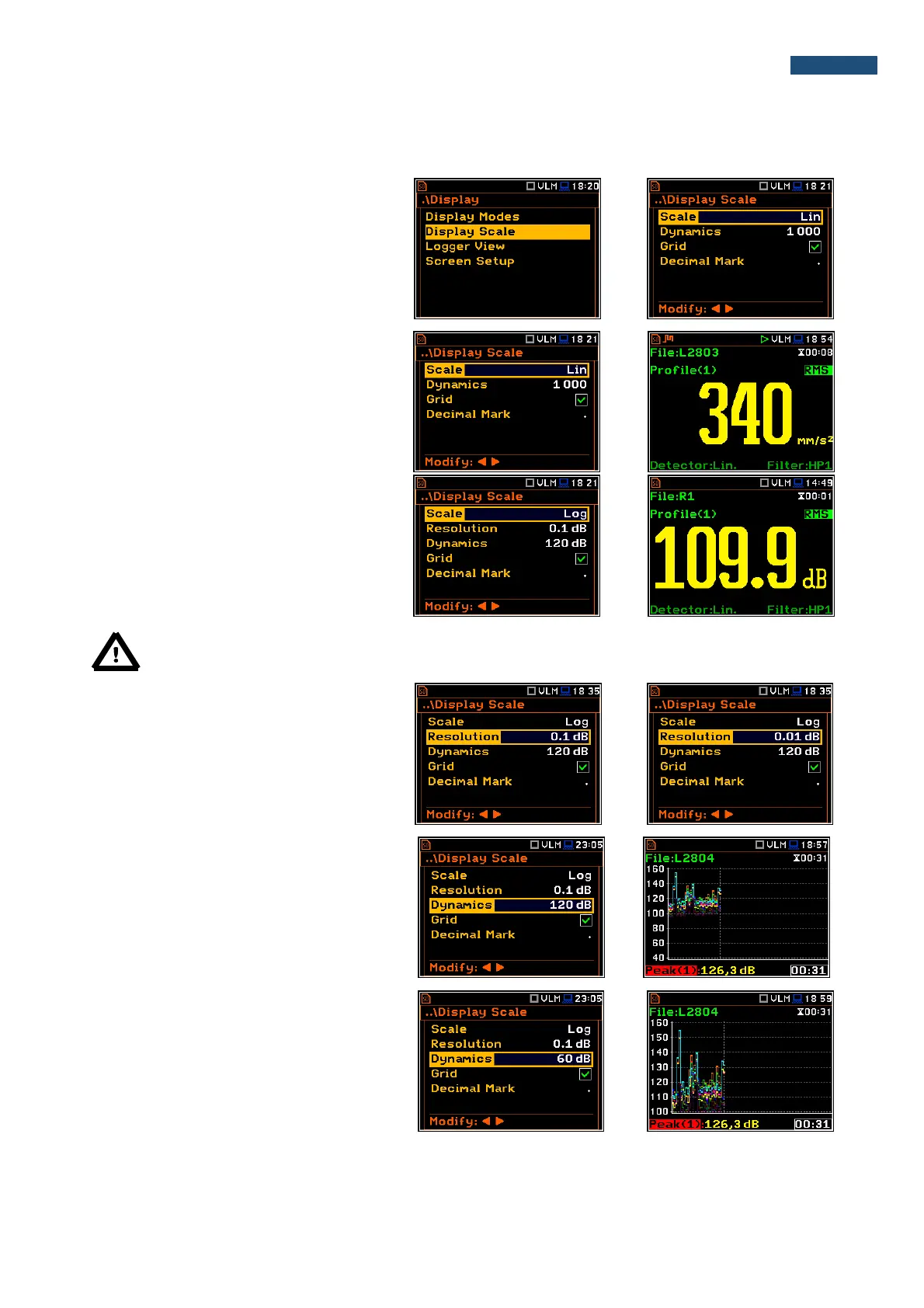 Note: The parameters can be presented in Logarithmic (dB) or Linear (for example, m/s