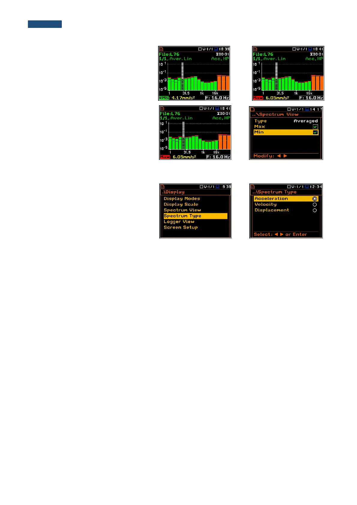 spectra to be presented on the display: