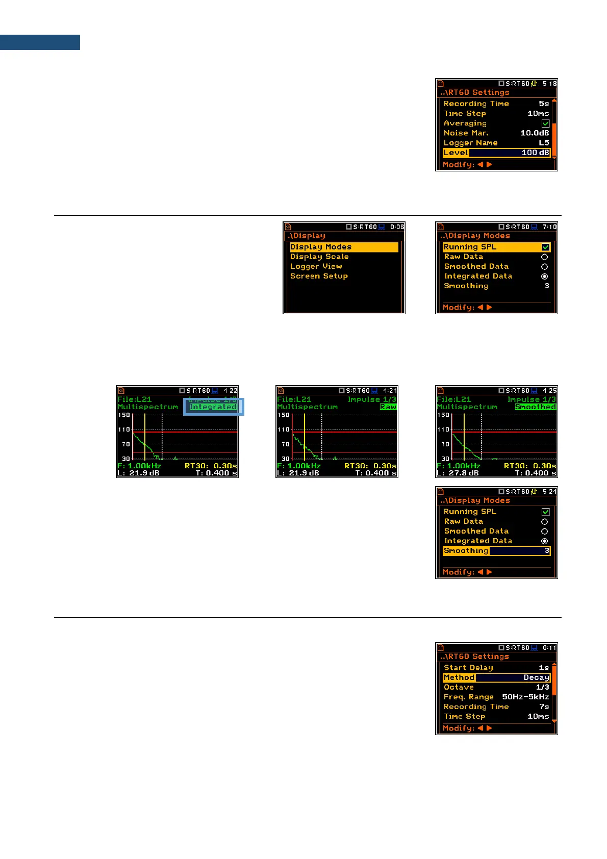 1. Set parameters for Decay RT60 measurements. Most used setup is
