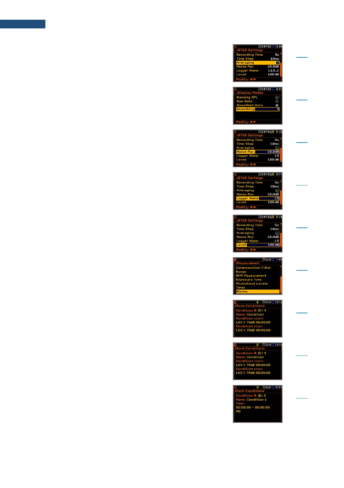result (Leq, Lpeak, Lmax, Lmin or sliding Leq for screens
